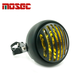 Faro de motocicleta universal con soporte Faro de parrilla con aletas de motocicleta de 5 "para Cafe Racer